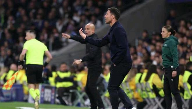 易边再战,落后的皇马展开了疯狂的反扑。安切洛蒂的球队在下半场完全掌控了场上的控球权,不断向曼城的防线施压。维尼修斯、贝林厄姆等攻击手多次在边路制造威胁,皇马的进攻如潮水般涌向曼城禁区。然而,曼城的防守组织得井井有条,门将多纳鲁马更是状态神勇,他多次做出精彩扑救,力保城门不失。曼城球员们在防守端展现出了顽强的意志和出色的战术执行力,他们用密集的防守和犀利的反击与皇马周旋。